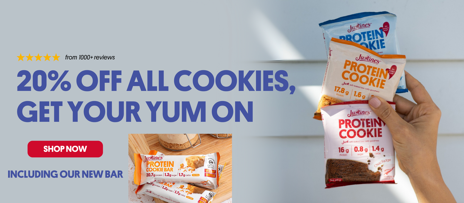 Justine’s Cookies are better for you (& delicious too!) They’re your go-to sugar free, gluten free, high protein & keto friendly snack, supporting your journey to a healthier you.